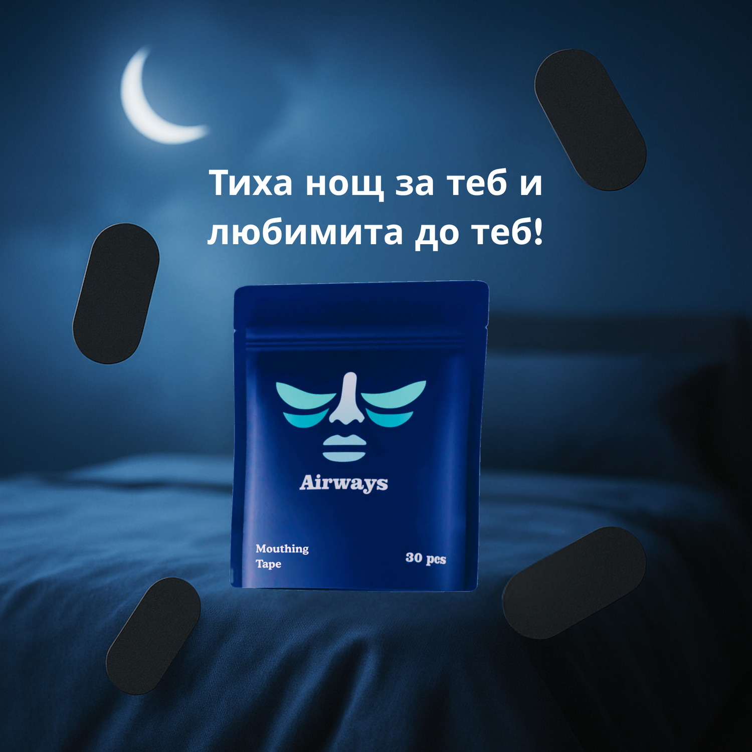 Дишането през уста съсипва съня, източва енергията и те оставя замаян на сутринта. Лепенките за уста на Airways поддържат естественото носово дишане, за да се будиш отпочинал, ясен в ума и неудържим.